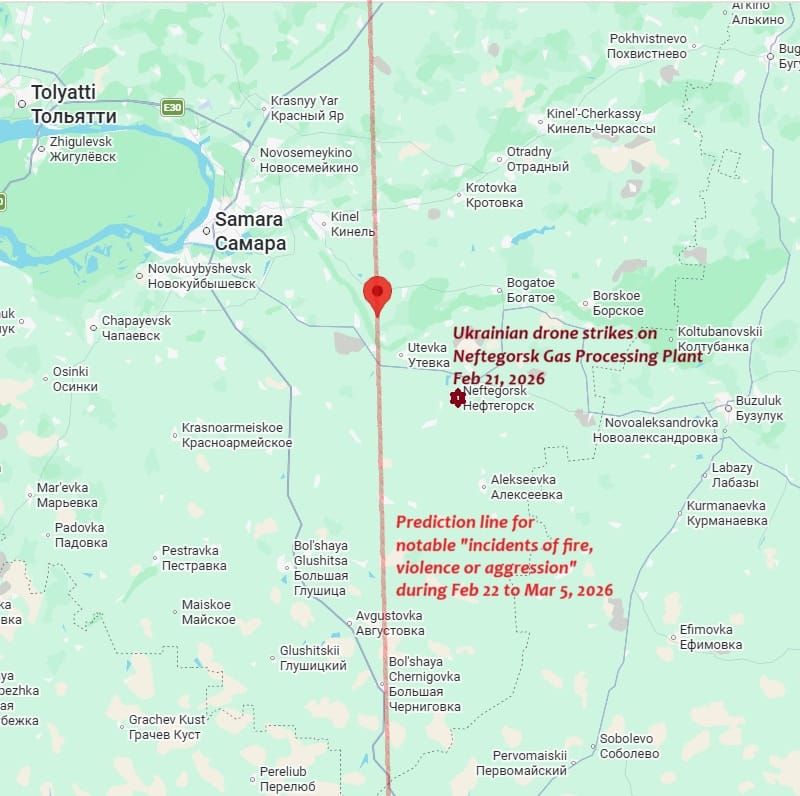 As you can see, the section of the line that passes through Iran and nearby areas has indeed yielded several incidents of fire, violence and aggression, and I have not even listed all the incidents here. A nearly 5.0 magnitude earthquake, too, has occurred very close to the line, serving the original purpose of the line. And the line has been active in some other sections, too, when it comes to fires and violence: for example, Ukraine's drone strikes on gas infra in Neftegorsk, an important development.