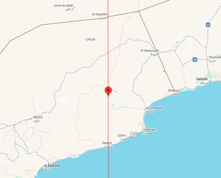 When extended further south, the line passes near the Yemen-Oman border, and this section is strongly malefic, and the Port of Salalah is near: however, I suspect it is earthquakes that may trouble the area, as some quake patterns can also be seen.