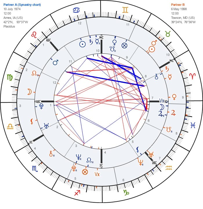 Let me end this with going back to Thompson and Mangione and see what their synastry chart shows us:
